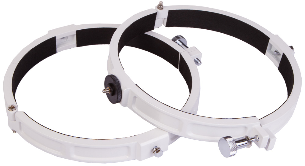 Кольца используются для крепления рефлекторов с апертурой 200 мм к монтировке. Данная модель подходит к любым экваториальным монтировкам Sky-Watcher и к азимутальной монтировке Sky-Watcher AZ3. Крепежные кольца изготовлены из алюминия. На одном кольце имеется крепление для установки фотокамеры.