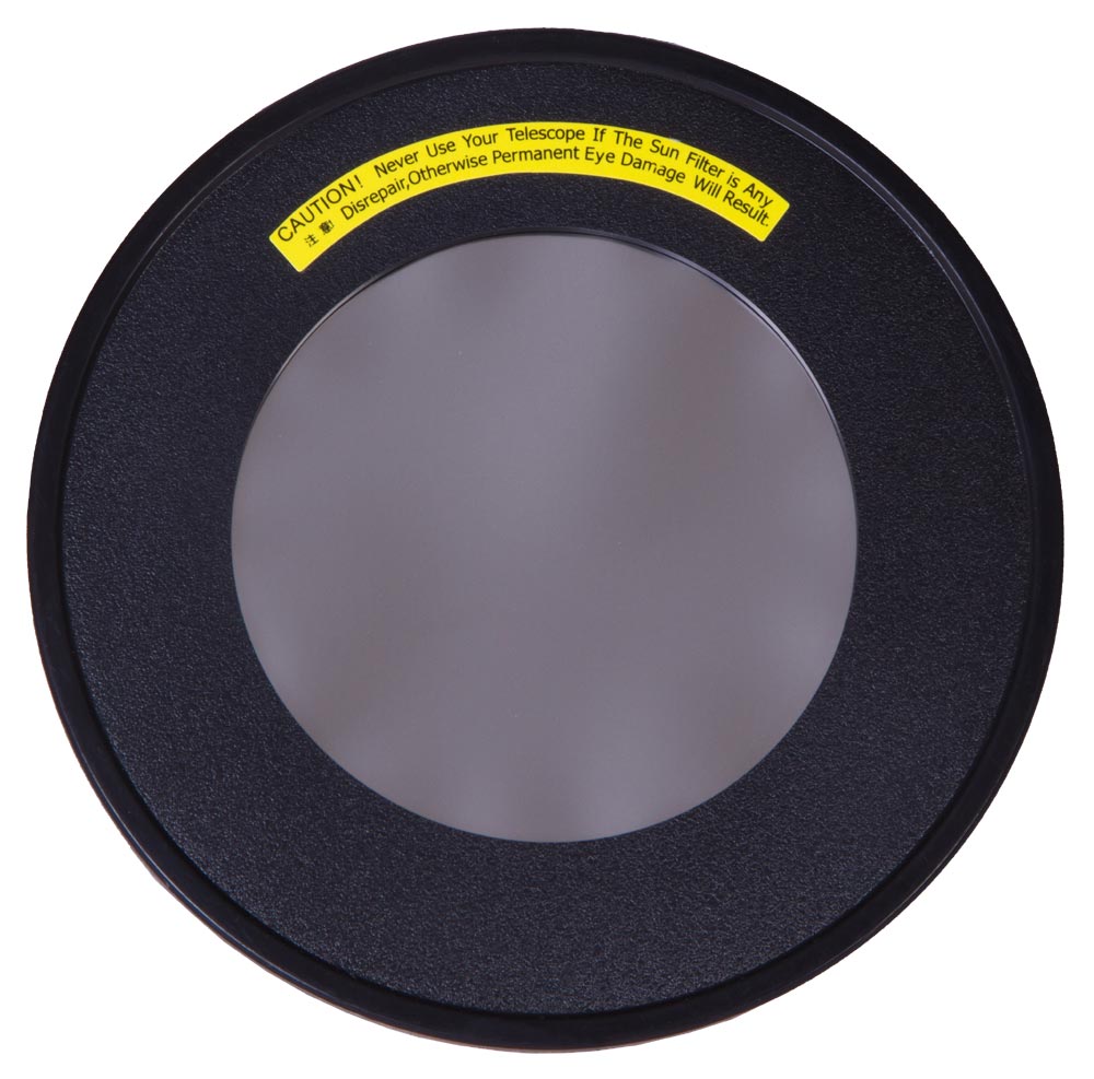 Солнечный фильтр Sky-Watcher для рефракторов 102 мм предназначен для защиты зрения при изучении солнечной активности через телескоп. Он сделан из защитной астрономической пленки, отсекает все вредное излучение и пропускает только 0,001% видимого света. Цвет Солнца при наблюдениях – нейтрально-белый.